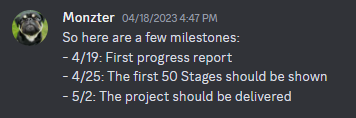 In this example, the project was to be finished by May 2nd. Two milestones were set on April 19th and 25th. Additionally, a condition was posed to the commissioner that if they didn’t reach the milestone on the 25th, a refund would be given.