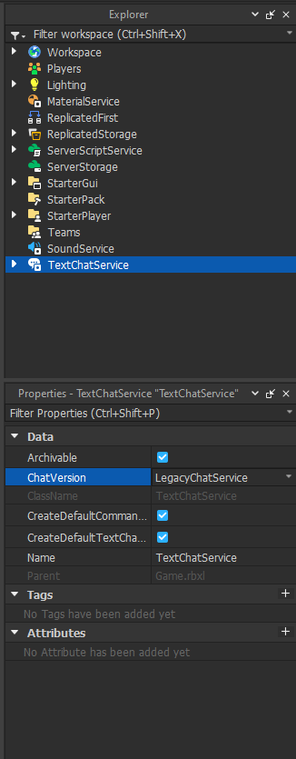 In order to use the Legacy Chat Service, we must change the ChatVersion property of the TextChatService object which can be found in the Explorer.